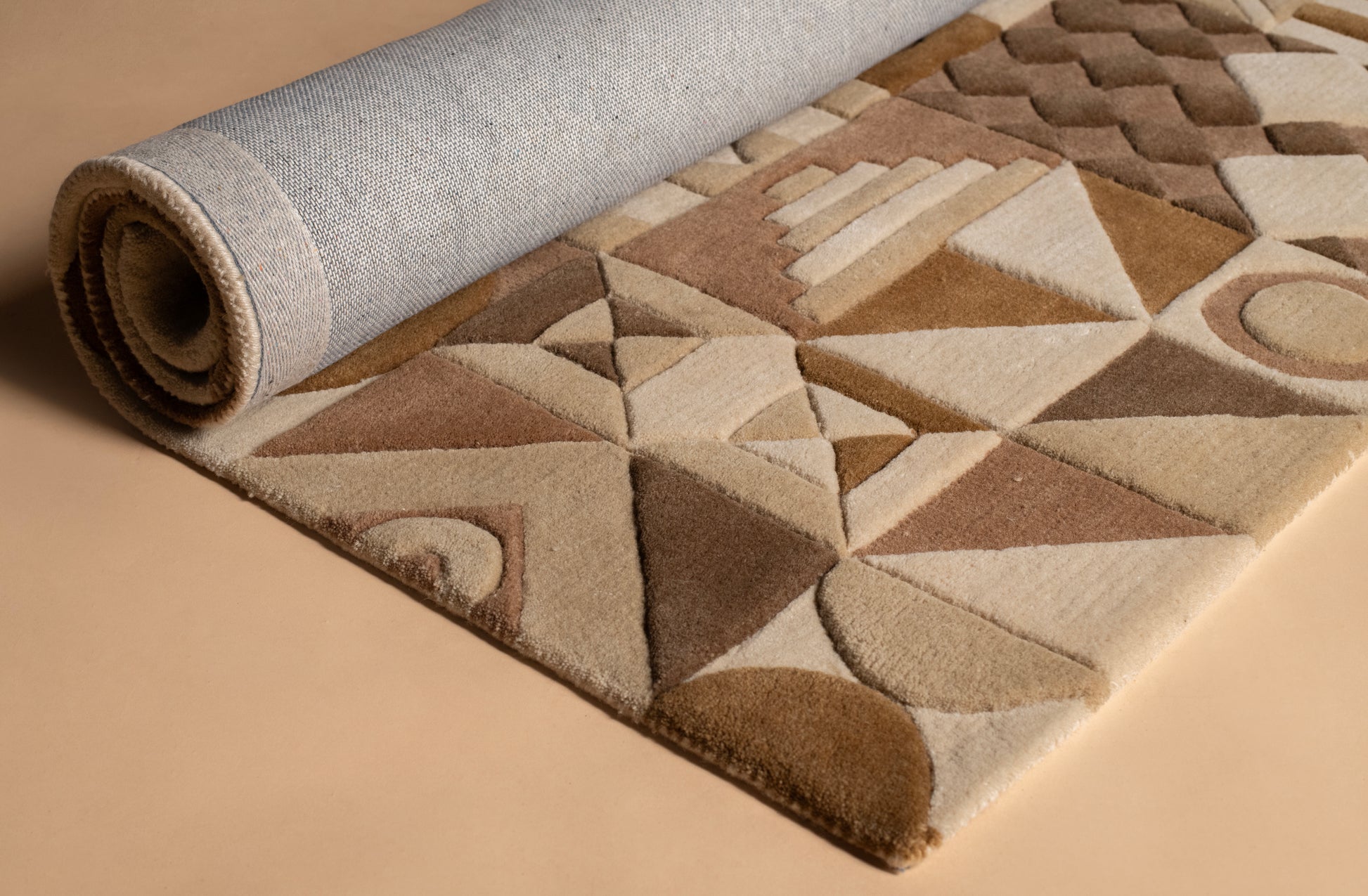 Varanasi is a sensory experience; both intensely overwhelming and calming all at once. A place where alongside the bustle of the streets the Ganges meanders with a ghostly whisper. This bamboo silk hand woven patterned rug is choreographed like synchronized aartis performed by saffron clad priests imbuing a sense of solace and calm.
