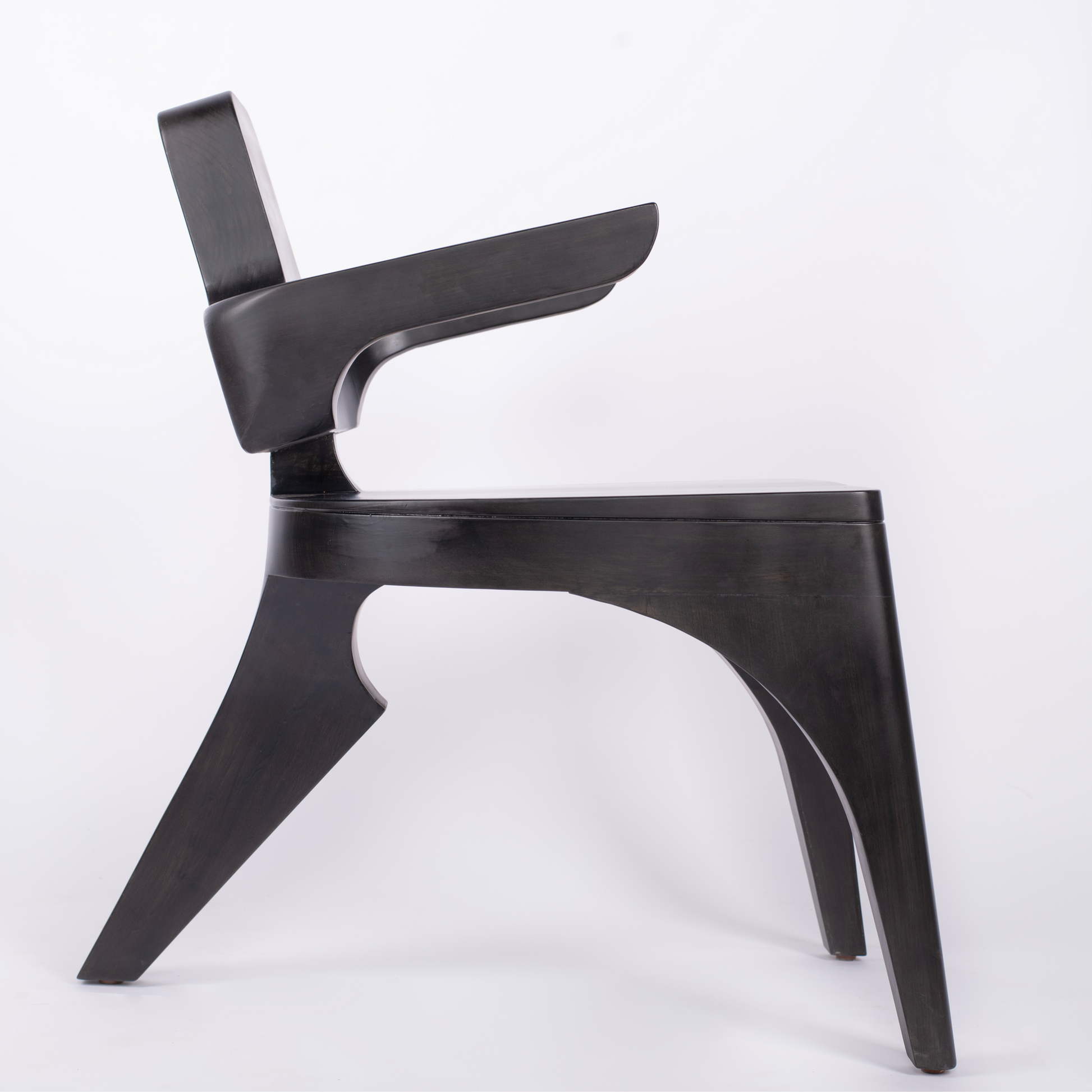 A modern marvel blending soft curves and sharp edges with meticulous detail. Cloaked in sleek black, the three-legged chair exudes sophistication.